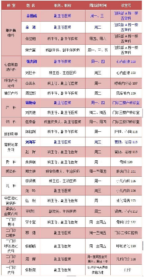· 专家出诊时间如遇特殊情况有变动,以当日安排为准,敬请谅解。